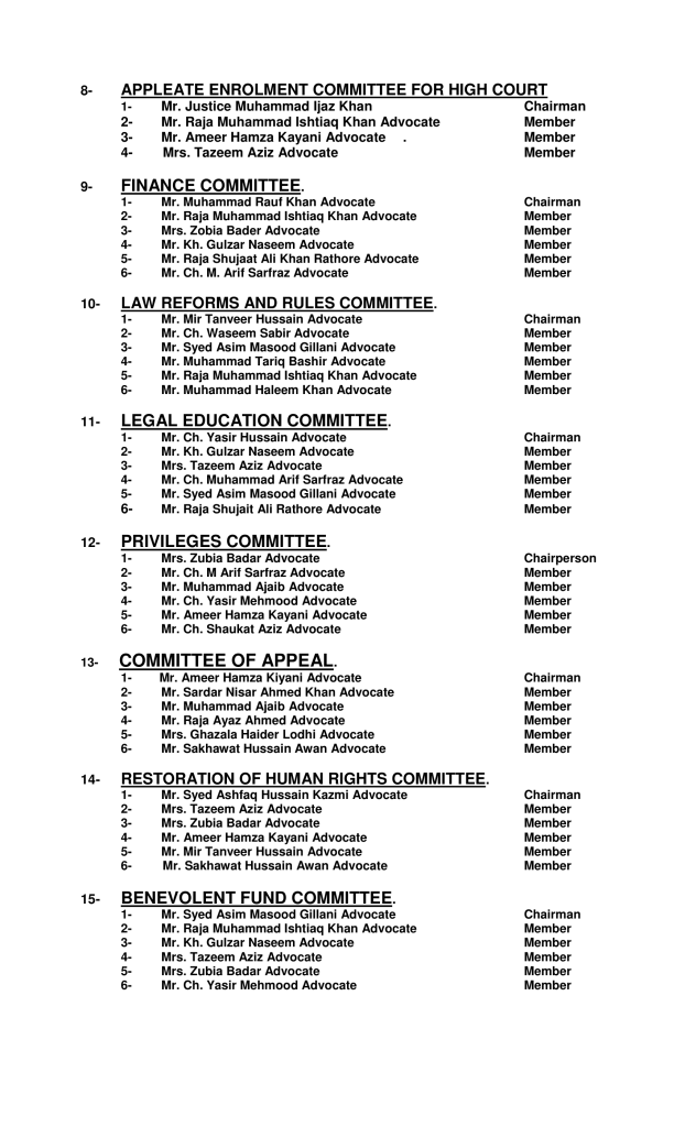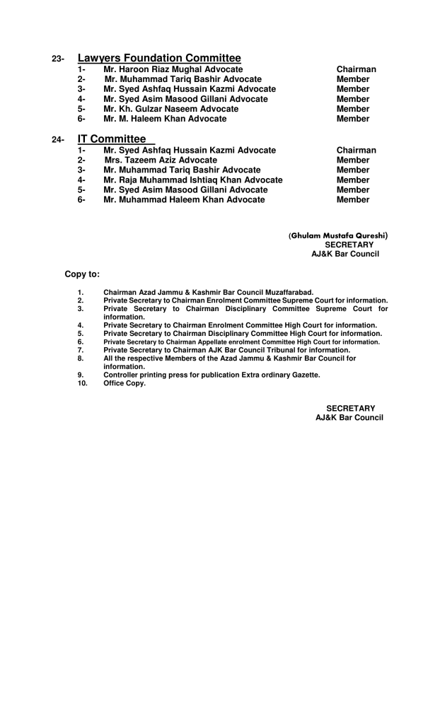 COMMITTEES AZAD JAMMU AND KASHMIR BAR COUNCIL