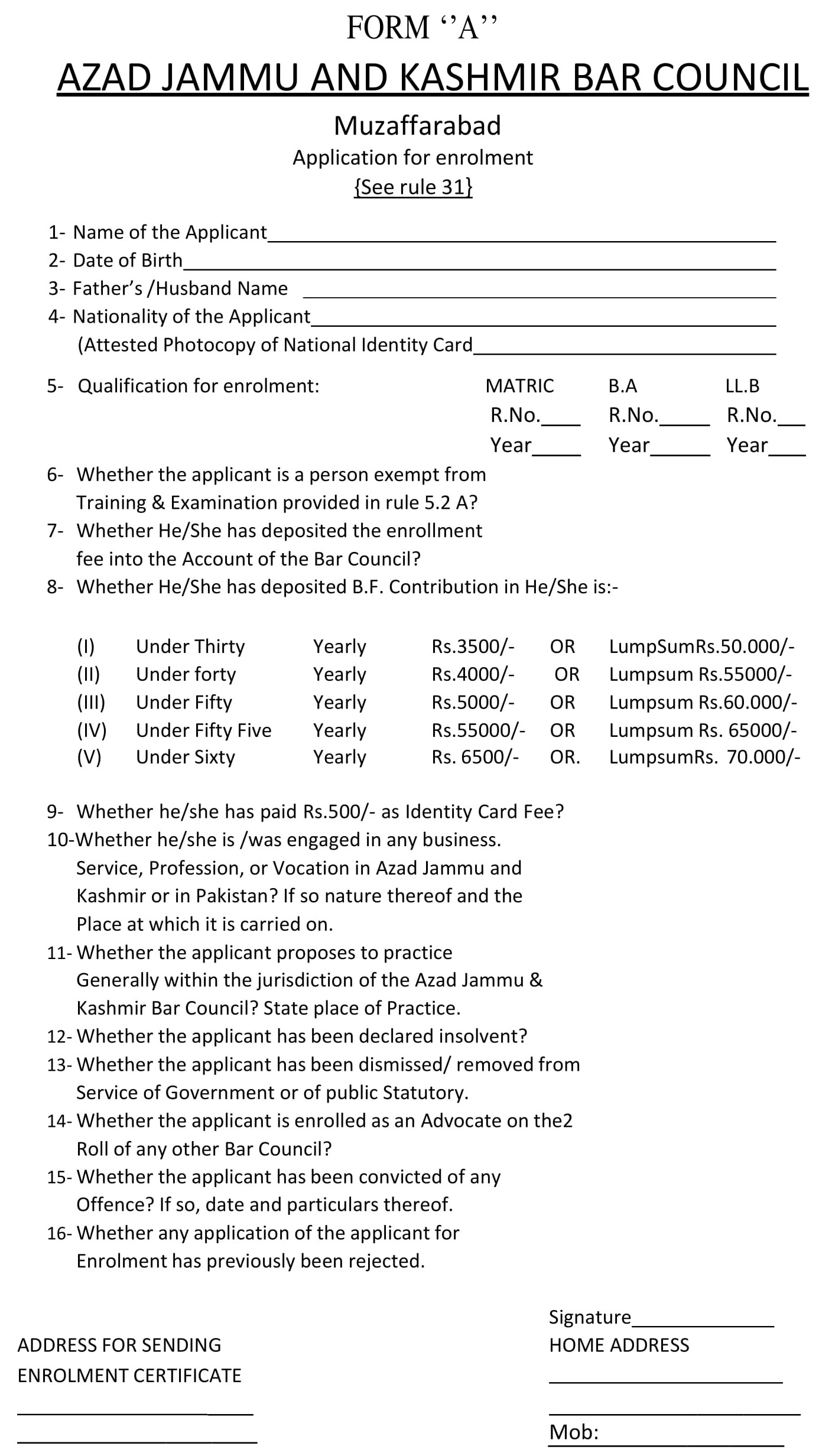 High Court Enrollment Form